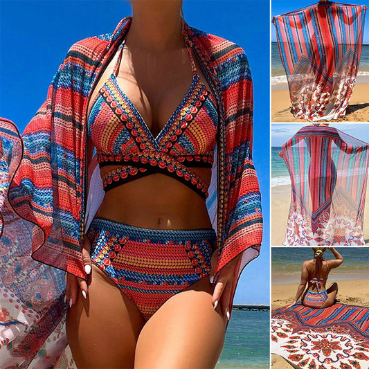 Cross-border Arrival Three-piece Split Swimsuit High Waist Sexy Cutout Blouse