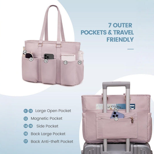 Black Women's Laptop Tote Bag - Professional Business Briefcase & Shoulder Handbag (Fits up to 15.6 Inch Laptop)