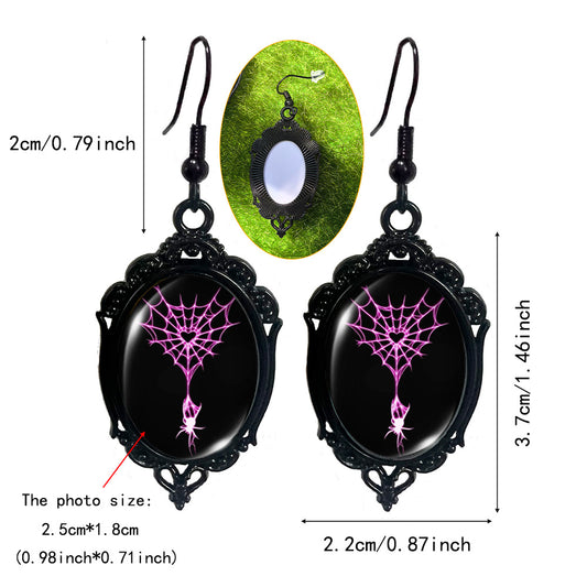 (Assorted 4-Pair Set) Gothic Spider Dangle Earrings - Vintage Black Frame Halloween Jewelry