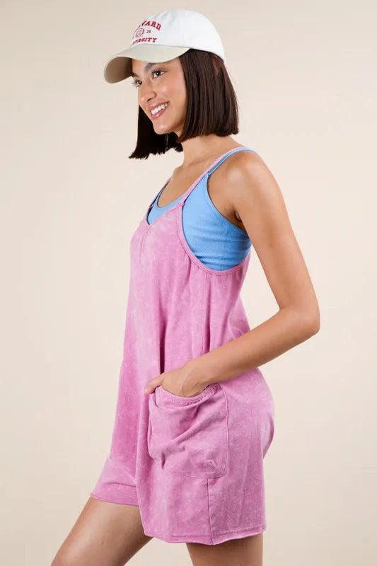 VERY J Plus Size Mineral Washed Sleeveless Knit Romper