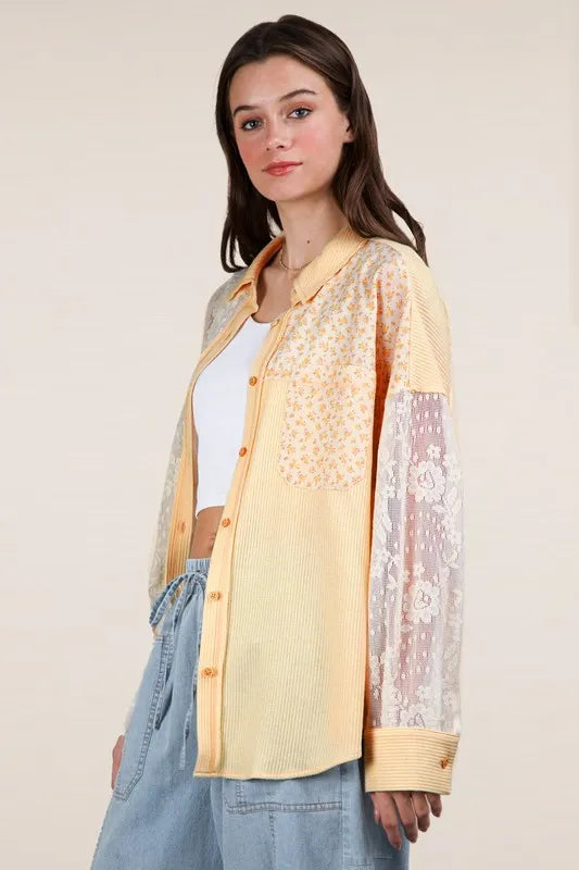 VERY J Plus Size Oversized Crochet Button Down Shirt Top