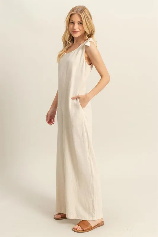 HYFVE Sleeveless Tie Waist Wide Leg Jumpsuit