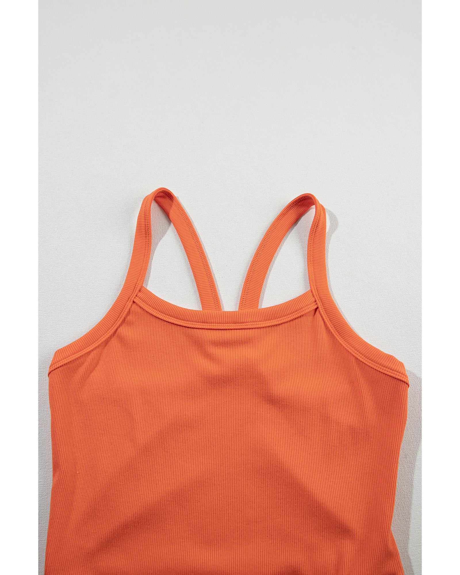 - Grapefruit Orange Athletic Ribbed Cropped Cami Top