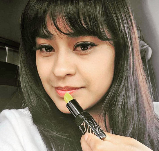 A formulation of natural plant extractsas absorbed by lip skin, causes lip color to change depending onbody heat, blood circulation, and pH value. Darker red indicates body is more acidic whereas pink indicates body is alkaline.