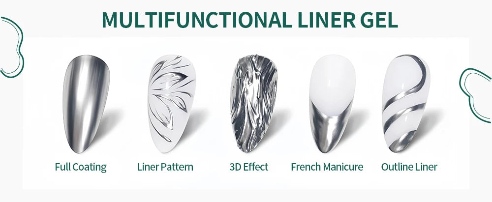 NAILPOP Gel Nail Polish Liner 8ML 5 Colors Nail Art Paint Gel for French Tips Swirls DIY Manicure Soak Off UV Cure with Brush