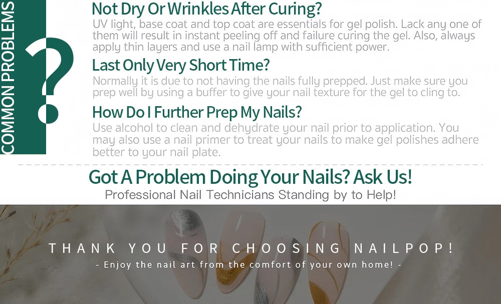 5. Contact:If you have any question, you can contact us by aliexpress message, or email us: nailpop2021@gmail.com
