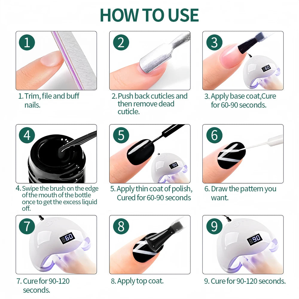In order to get a good effect, we recommend to use this nail art gel with base coat and top coat which is not included.