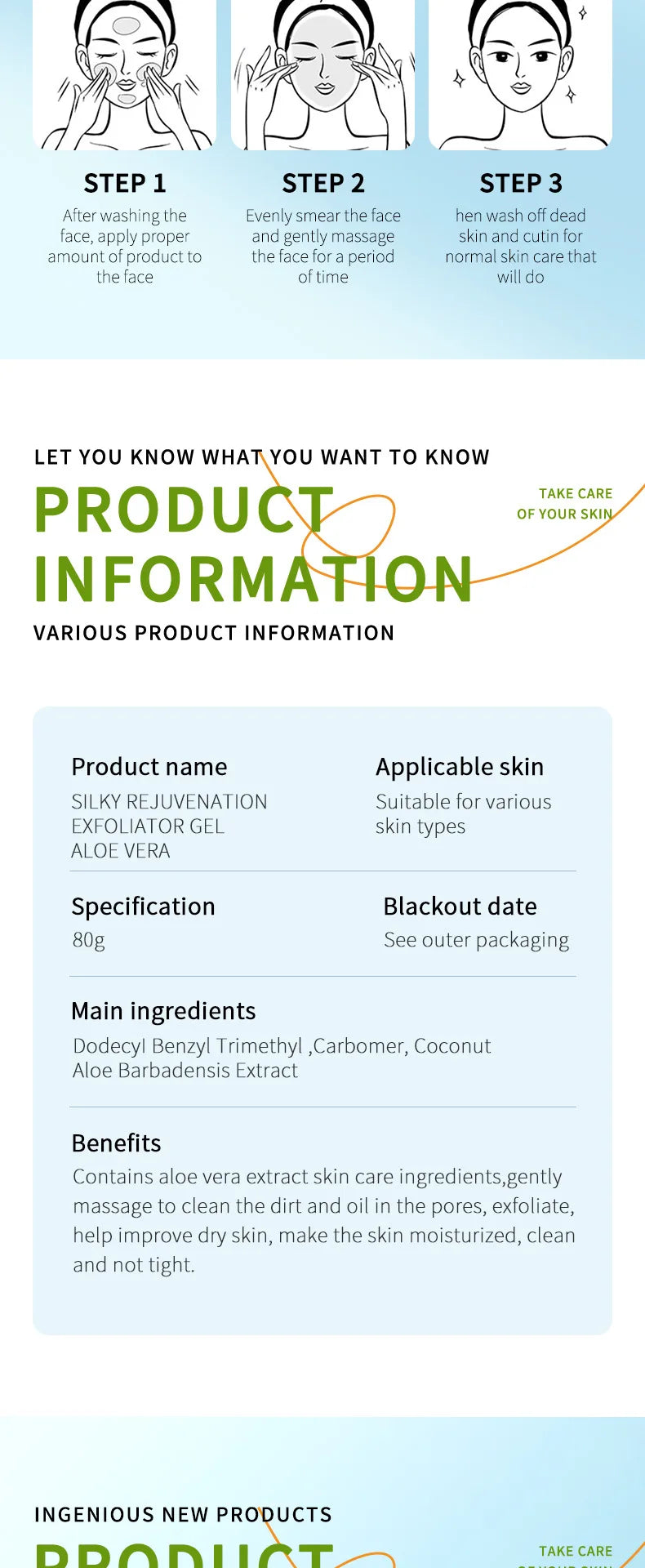 SADOER Exfoliating Aloe Vera Gel Facial Cleanser Deep Cleansing Exfoliant Gentle Tender Face Exfoliation Facial Exfoliator